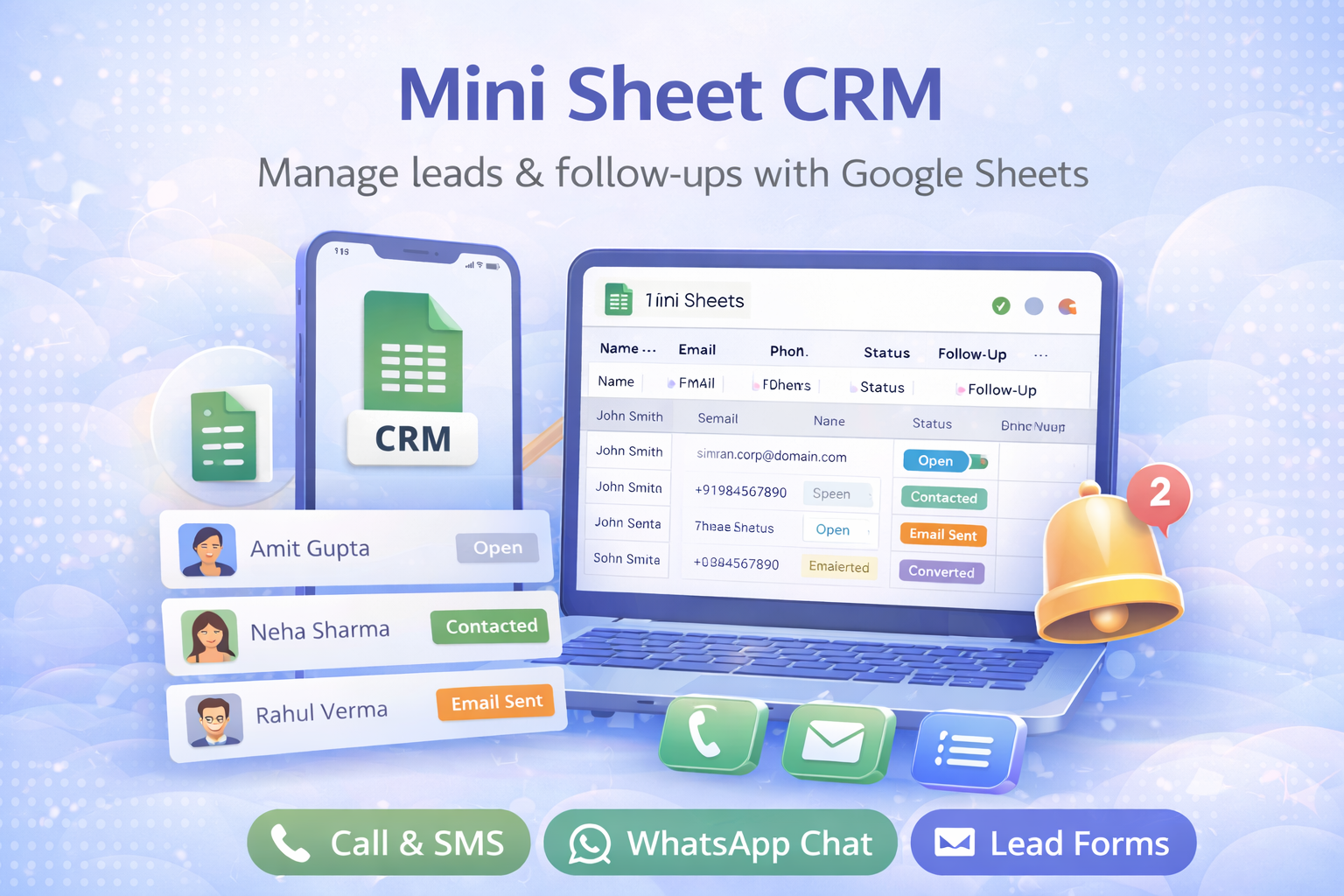 Mini Sheet CRM is built for small businesses that want an easy, affordable, and flexible CRM solution. It works completely inside Google Sheets, allowing you to track leads, follow-ups, and conversions in real time from both mobile and desktop.