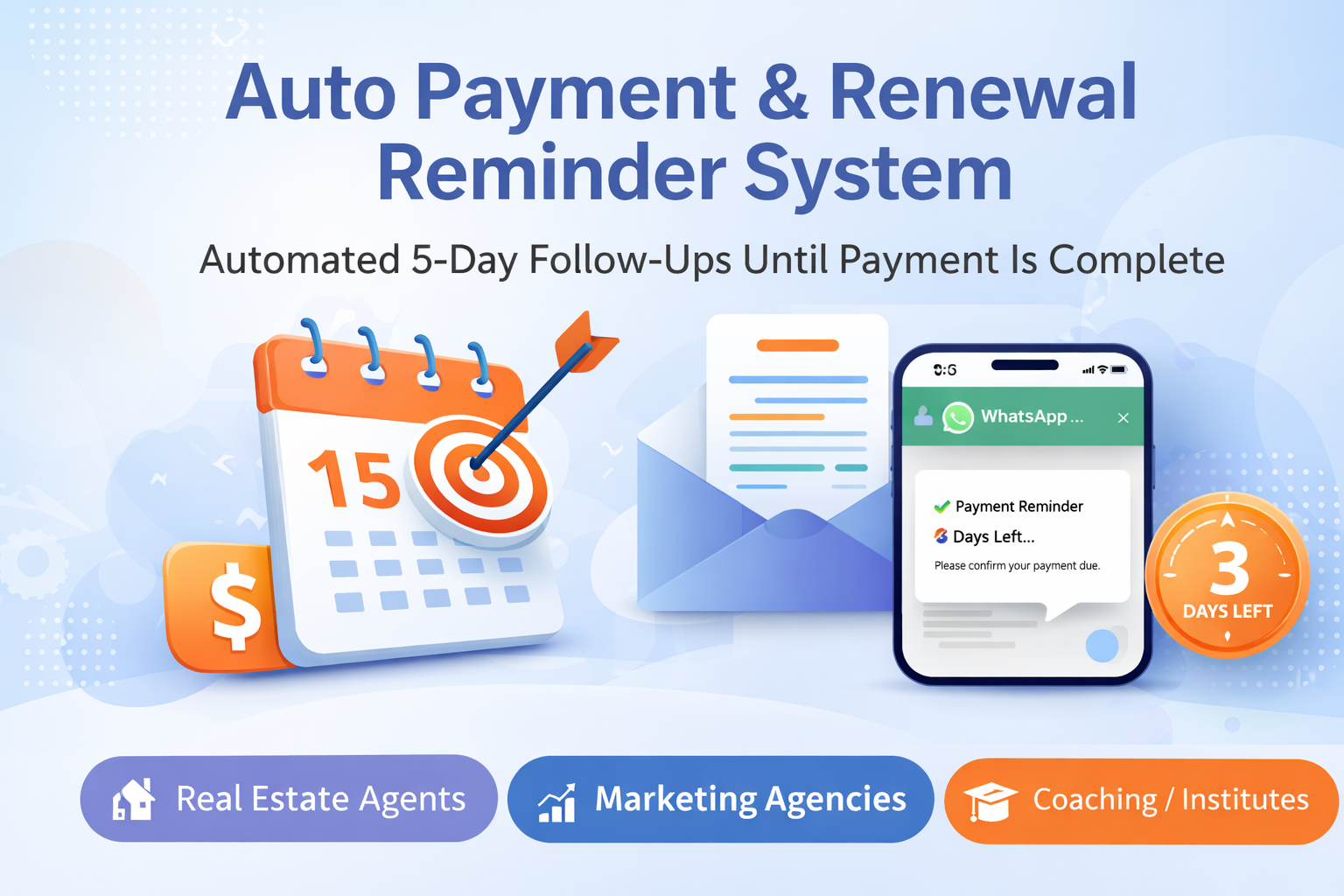 Auto Payment & Renewal Reminder System is a smart automation solution designed to eliminate manual payment follow-ups and missed renewal dates.